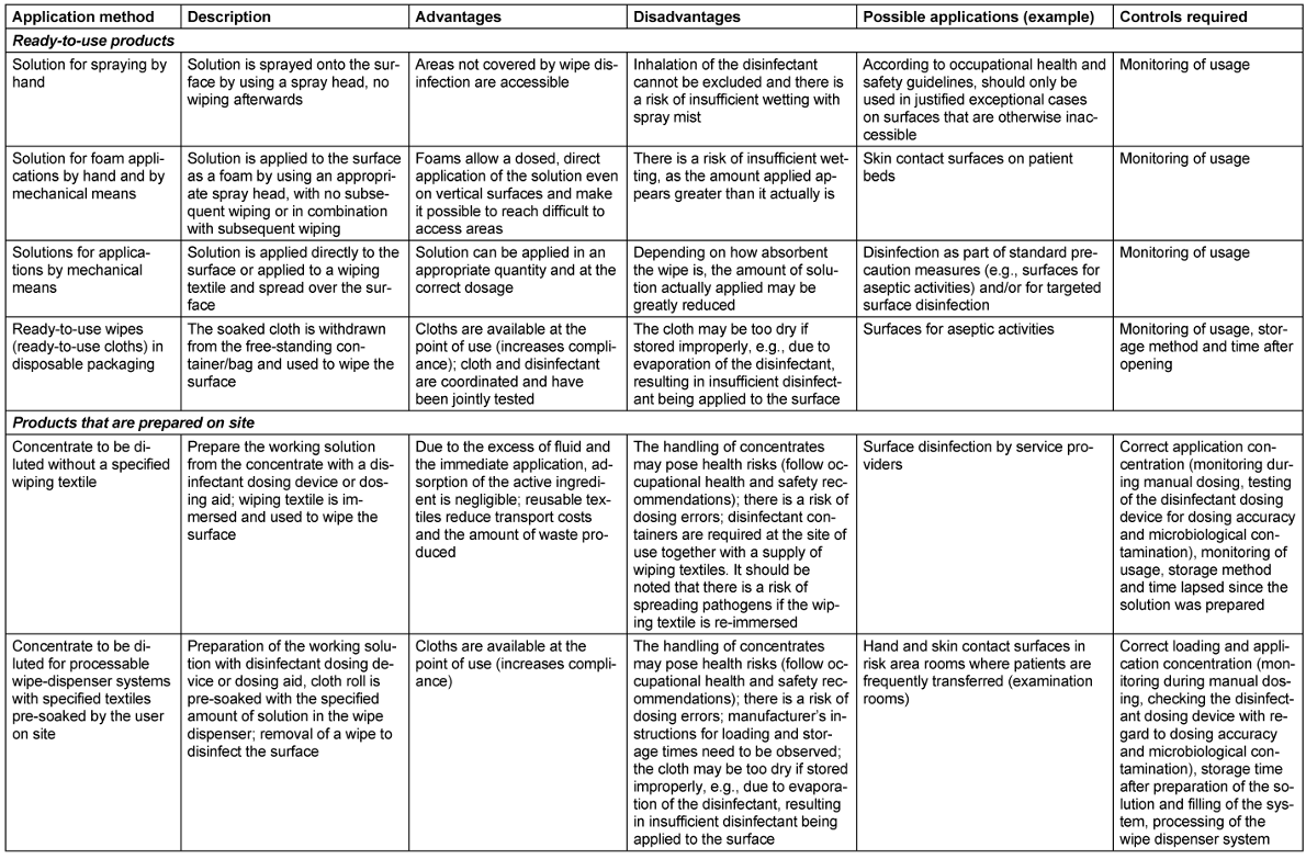 Additional electronic supplementary material is available in the online version of the German original recommendation “Hygiene Requirements for the Cleaning and Disinfection of Surfaces” of the Commission for Hospital Hygiene and Infection Prevention (KRINKO) at the Robert Koch Institute (https://doi.org/10.1007/s00103-022- 03576-1) as informative appendix (only in German).