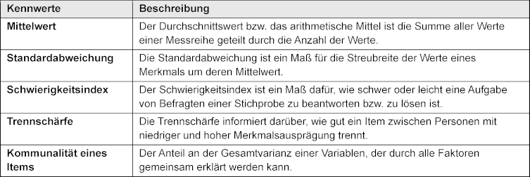 Tabelle 4: Beschreibung von teststatistischen Kennwerten