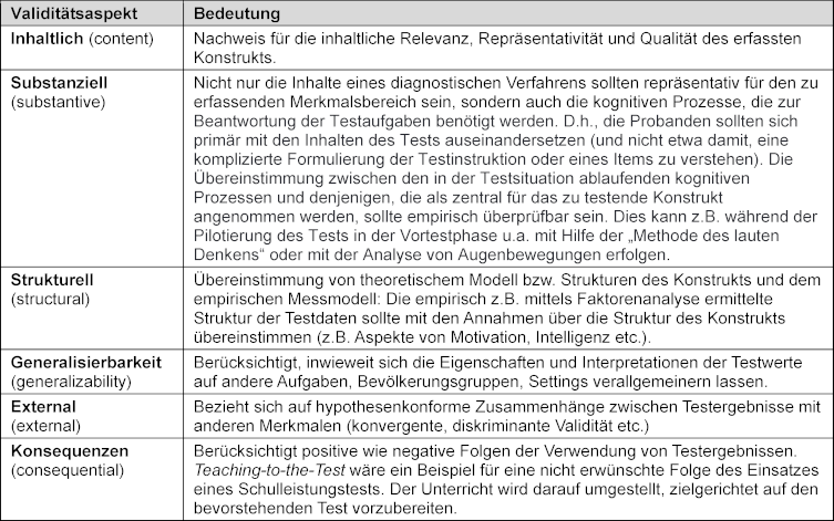 Diese Erweiterungen des klassischen Validitätskonzepts werden mittlerweile u.a. von der American Educational Research Association (AERA) und der American Psychological Association (APA) vertreten [15], [16].
