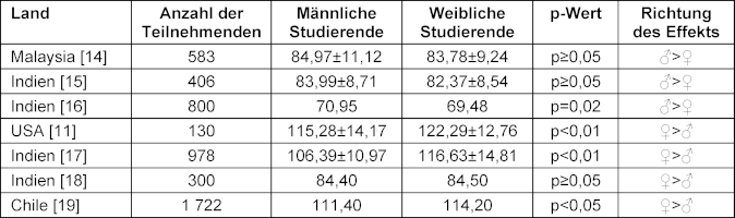 Tabelle 1: Empathiewerte nach Geschlecht in internationalen Studien mit Zahnmedizinstudierenden