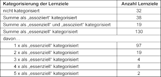 2.3. Kategorisierung und Gewichtung der ausgewählten Lernziele