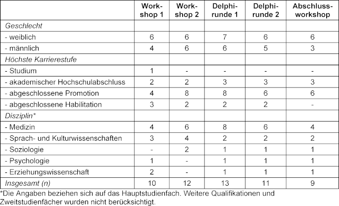 Die Teilnehmenden verfügten über diverse disziplinäre Hintergründe (siehe Tabelle 1 [Tab. 1]).
