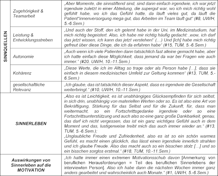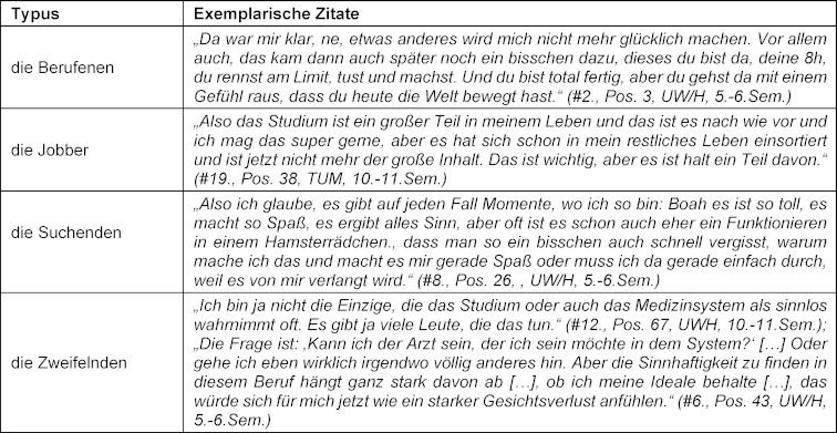 [„Da war mir klar, etwas Anderes wird mich nicht mehr glücklich machen“ – eine qualitative, typenbildende Interviewstudie zu Sinnerleben und Motivation im Medizinstudium an zwei medizinischen Fakultäten]