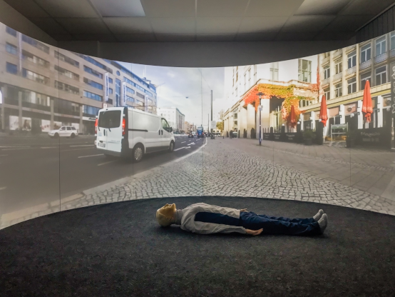 Simulation arenas, that project videos from multiple projectors onto curved screens, to enable a realistic, quickly interchangeable, secure, and standardized environment representation for emergency medical simulations are rarely used in emergency medical education worldwide due to the high development costs, which can exceed 100,000 euros [1], [2], [3], [4], [5], [6], [7], [8], [9], [10]. The semicircular training rooms provide a protected and secure environment and allow the simulation of the wide range of locations and environmental conditions in which emergency medical personnel must operate, but where simulations are not regularly possible, such as busy roads, highways, railways, and even military battlefields [1], [2], [3], [4], [5], [6], [7], [8], [9], [10], [11], [12], [13]. Using video projection, environmental sounds, and flexible props, different scenarios can be quickly interchanged to create a standardized, realistic environment for learning and exams [1], [3], [7], [9], [10], [13]. In addition, environmental simulation can create realistic stress conditions, restrict the regular workflow and challenge the teamwork and interpersonal communication [9], [10], [13], [14], [15]. The high degree of realism in simulation training is of pertinence, as it aims to attain a high level of competence through the seamless integration of learned techniques into daily life and clinical situations [10], [16]. In addition, it can help develop a certain level of stress resistance. Processes such as communication, leadership, and decision-making under stress can be experienced in a targeted manner, while at the same time emphasizing the importance of complying with medical and non-medical safety standards [9], [10], [15]. There is evidence that stress can potentially reduce attention resources, increase distractibility, and impair resuscitation performance [17].