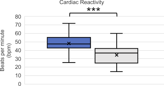 Figure 8: Cardiac reactivity (blue: IG, grey: CG)
