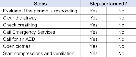 The primary objective measure of the quality of resuscitation was the total score (TOTAL), which was calculated by the Laerdal Resusci Anne QCPR and the Laerdal SimPad PLUS SkillReporter immediately after resuscitation as an overall value of resuscitation performance based on the parameters of compression, ventilation, and time with CPR activity [26]. The algorithm used was developed by Laerdal Medical in close collaboration with members of the Emergency Cardiovascular Care (ECC) Subcommittee of the American Heart Association (AHA) and co-authors of the AHA Guidelines for Cardiopulmonary Resuscitation [27]. In addition, several secondary resuscitation parameters were also measured (see table 3 [Tab. 3]) [26]. As a further secondary objective, a resuscitation checklist was defined (see table 4 [Tab. 4]). This checklist was completed by the examiner during resuscitation and was based on the recommendations for lay resuscitation (“BLS procedure for adults”) of the 2015 guidelines of the German Resuscitation Council [28]. Unperformed actions were recorded as the number of errors (n).