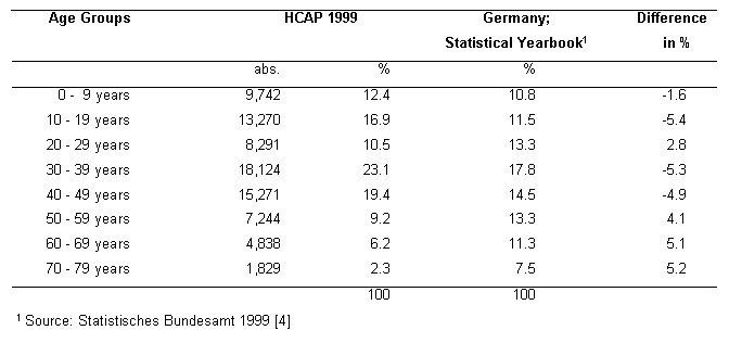 i.e. the percentage of persons who had at least one out-patient consultation with the respective medical discipline. The data obtained with the HCAP and those observed in the most recent German National Health Survey [6] were found to be very close, i.e. with some random oscillation.