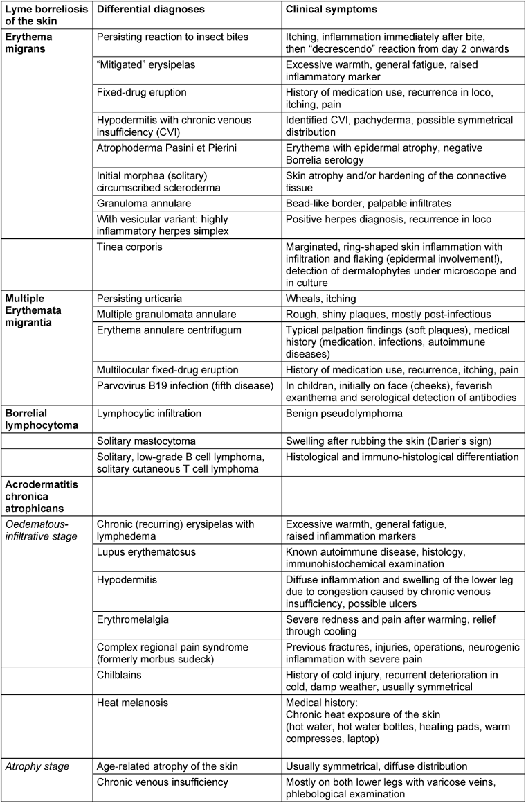 [217] Hofmann H, Aberer E, Bruckbauer H, Fingerle V, Mempel M, Müllegger RR, et al. Kutane Manifestationen der Lyme Borreliose. Berlin: AWMF; 2009.