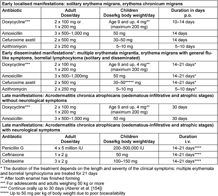 [152] Aberer E, Kahofer P, Binder B, Kinaciyan T, Schauperl H, Berghold A. Comparison of a two- or three-week regimen and a review of treatment of erythema migrans with phenoxymethylpenicillin. Dermatology. 2006;212(2):160-7. DOI: 10.1159/000090657