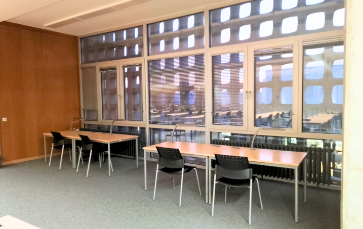 • Gruppenarbeitsraum (große Gruppentische aus dem unteren Lesesaal in den neuen Raum verlegen)