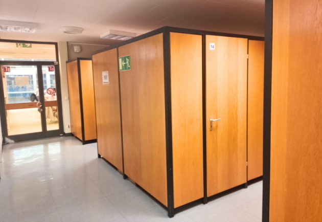• Ein zurzeit ungenutzter Raum mit derzeit nicht genutzten Lernkabinen